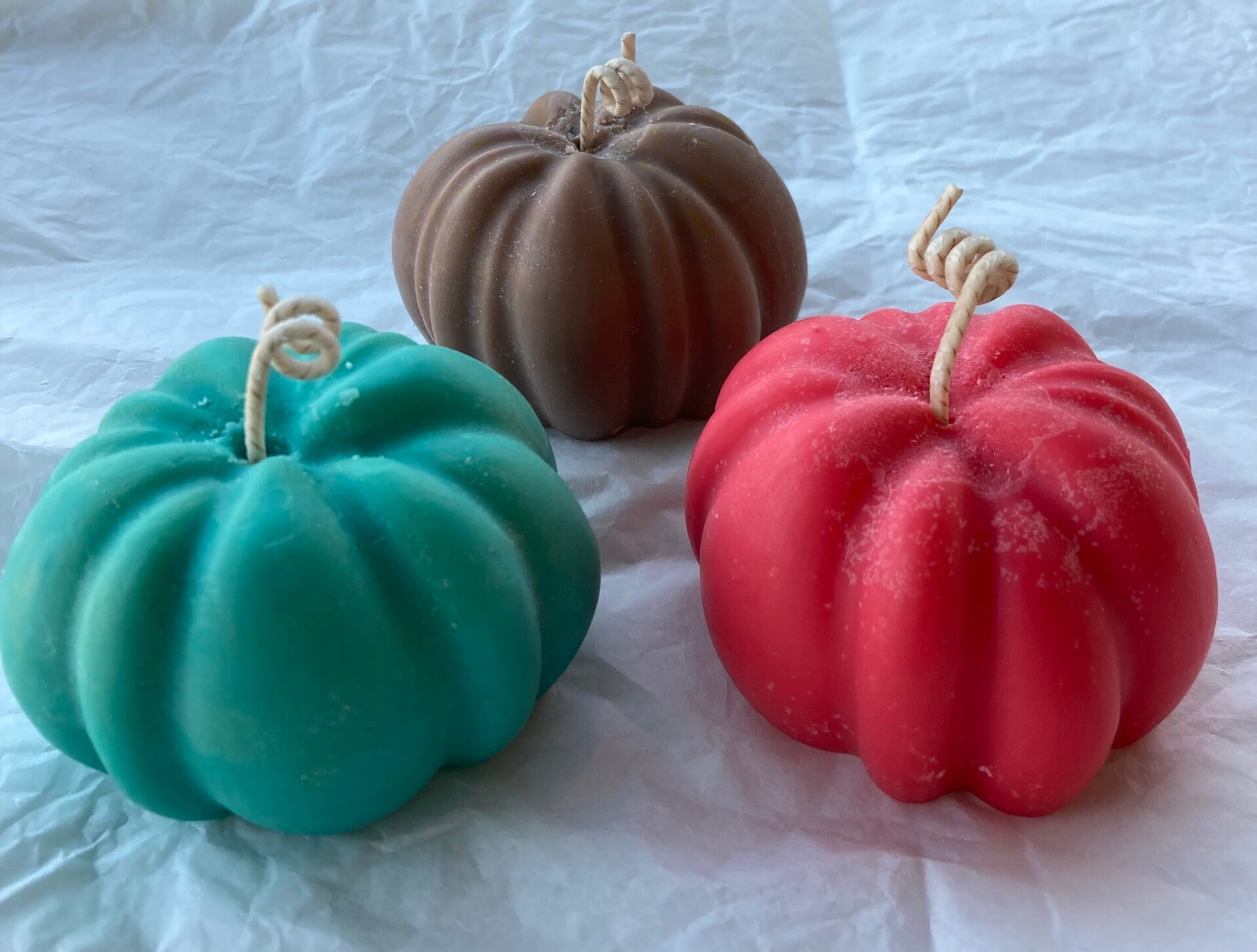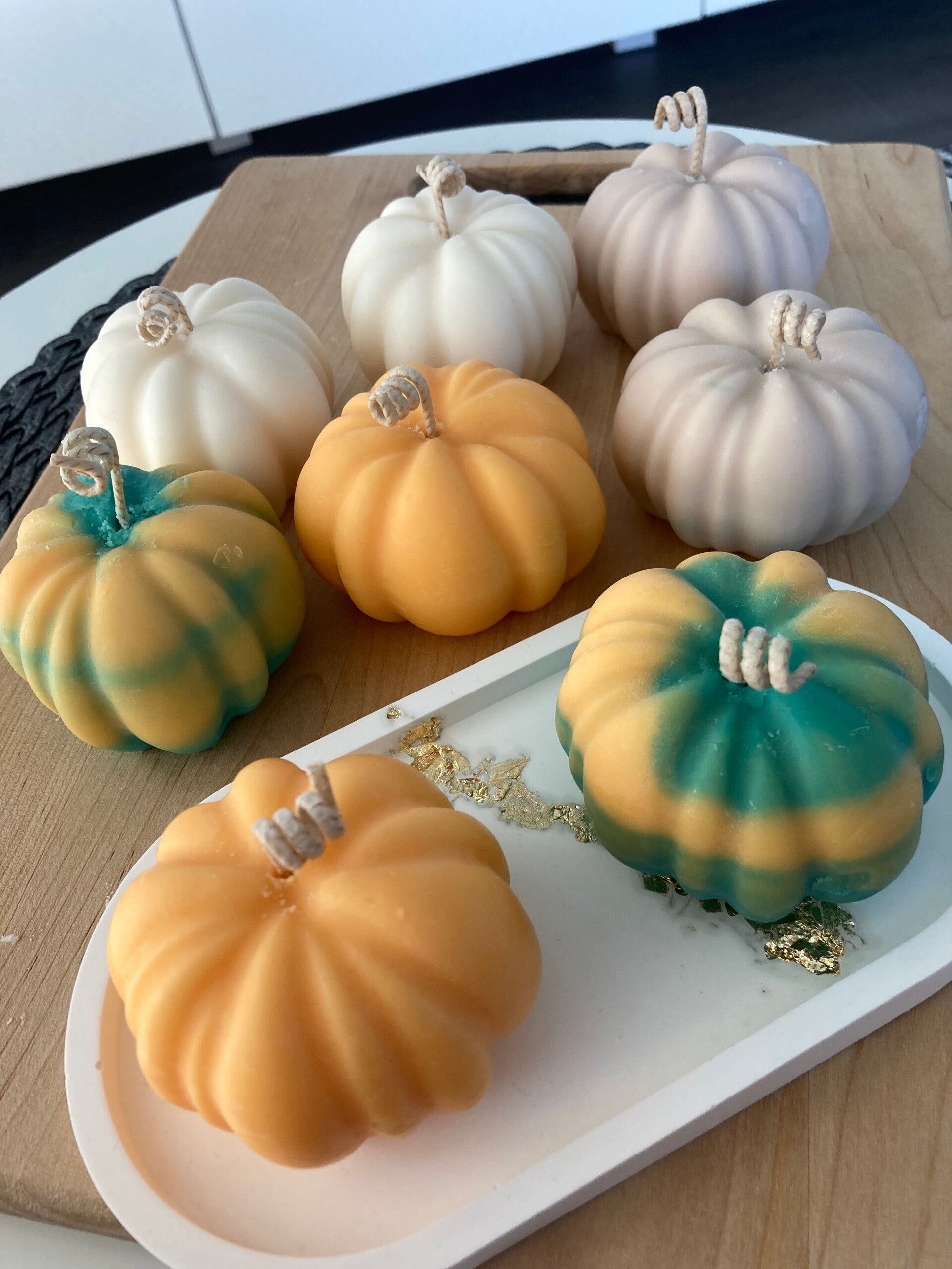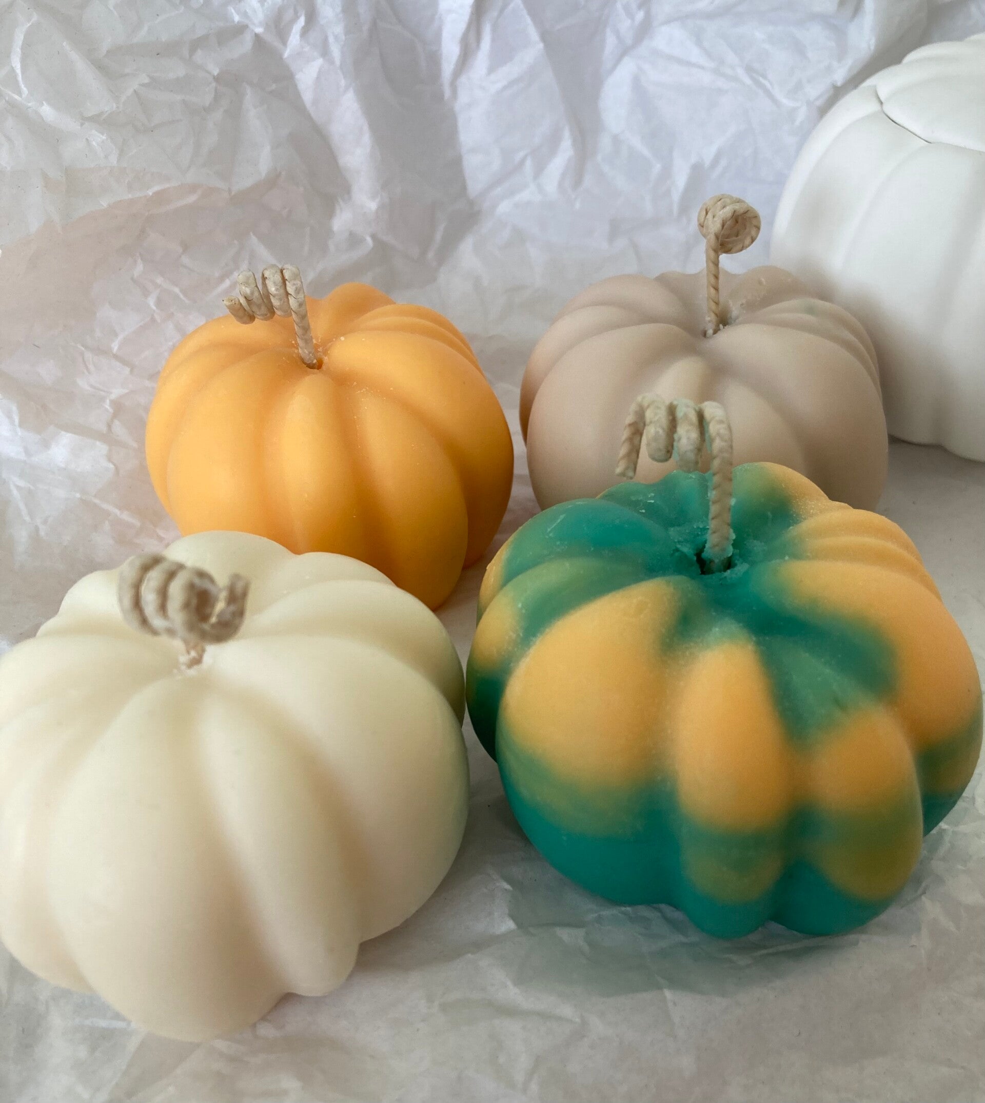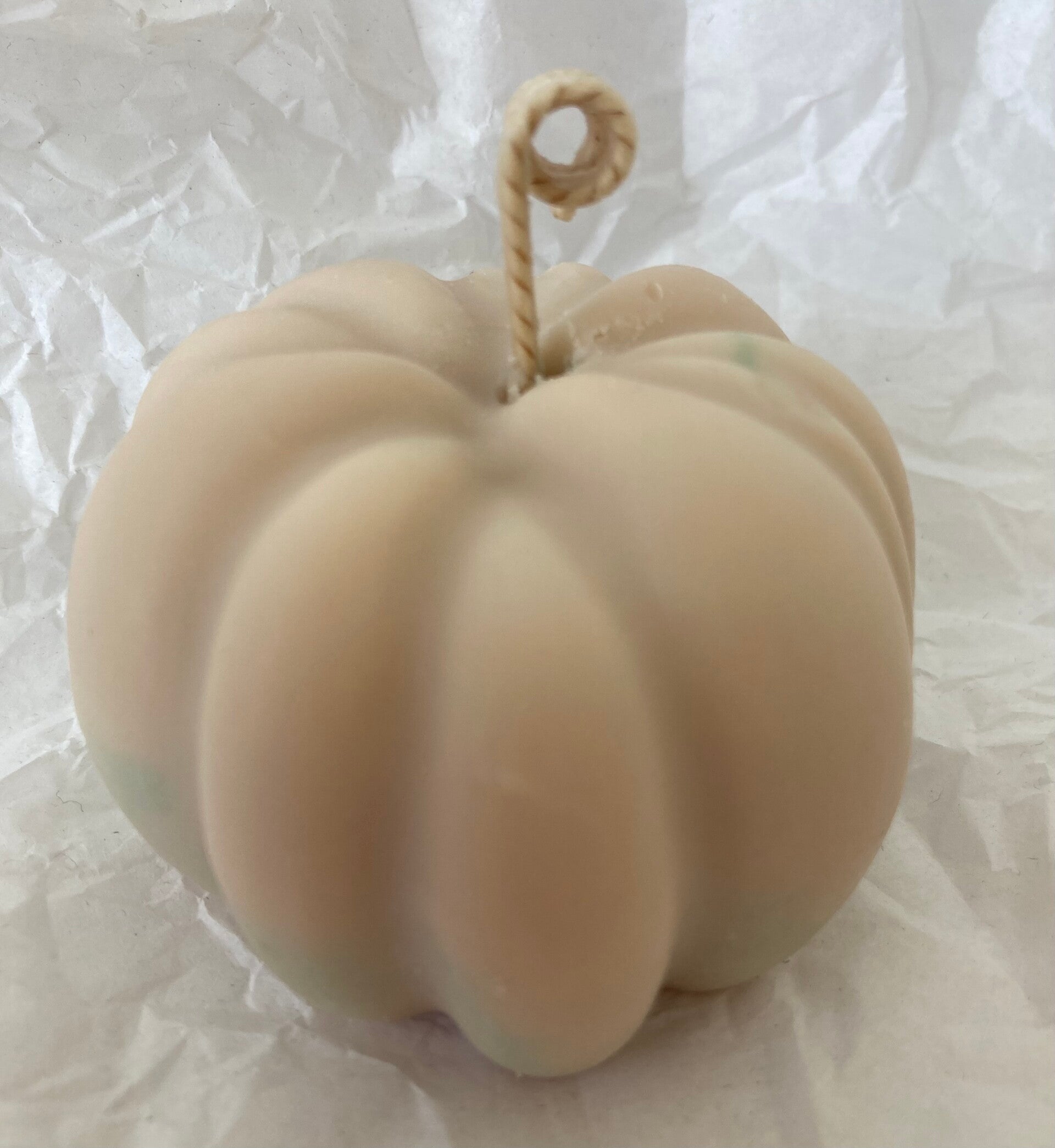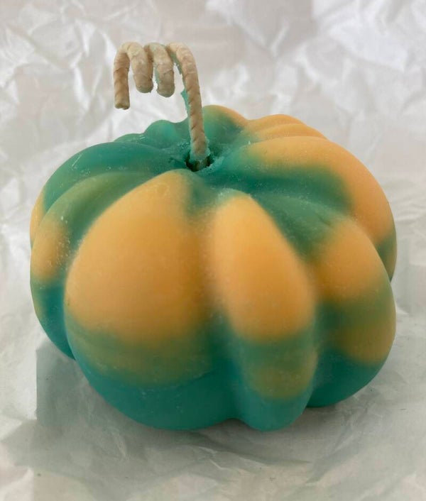Käsintehty,kurpitsan muotoinen kynttilä.