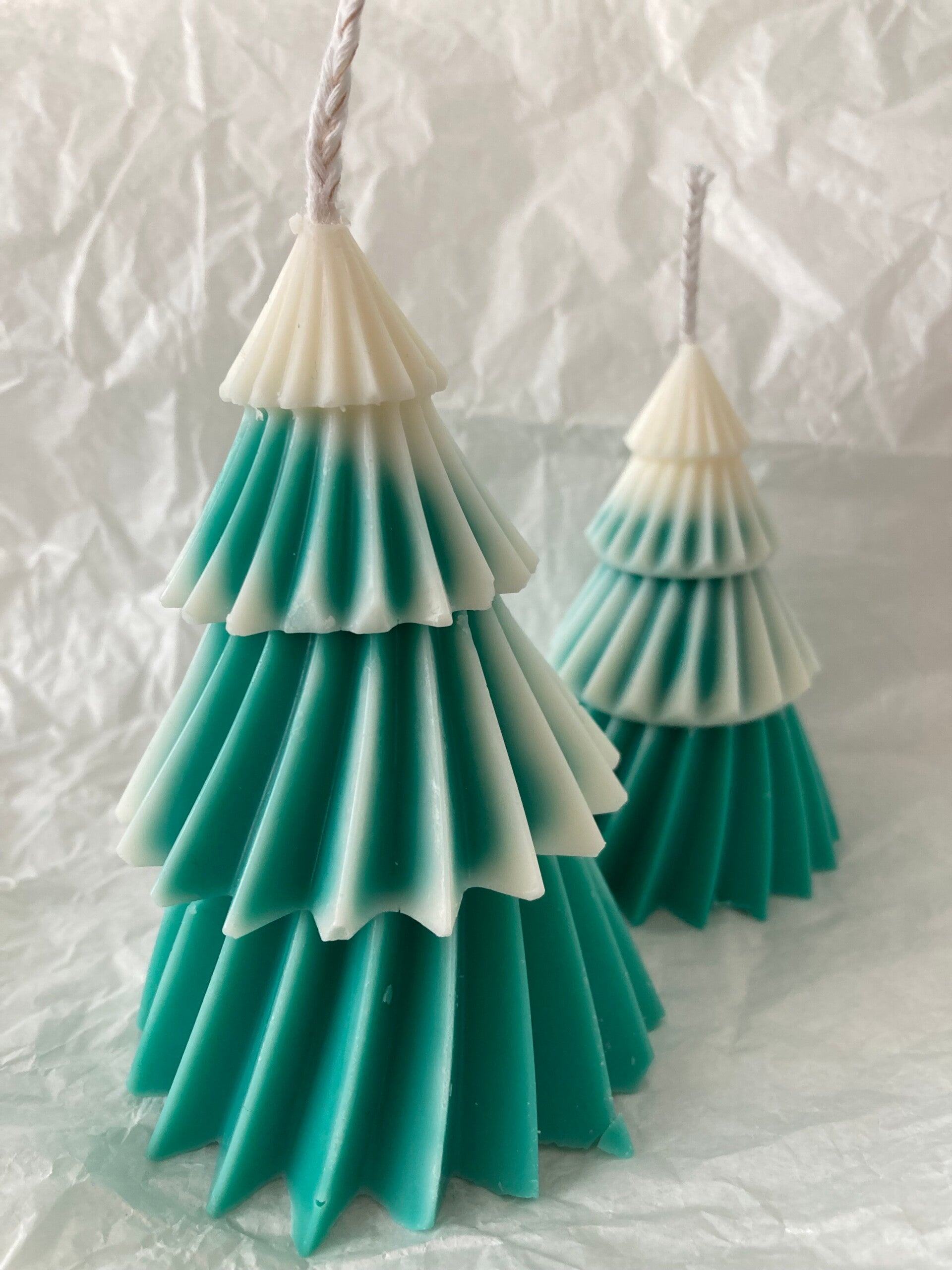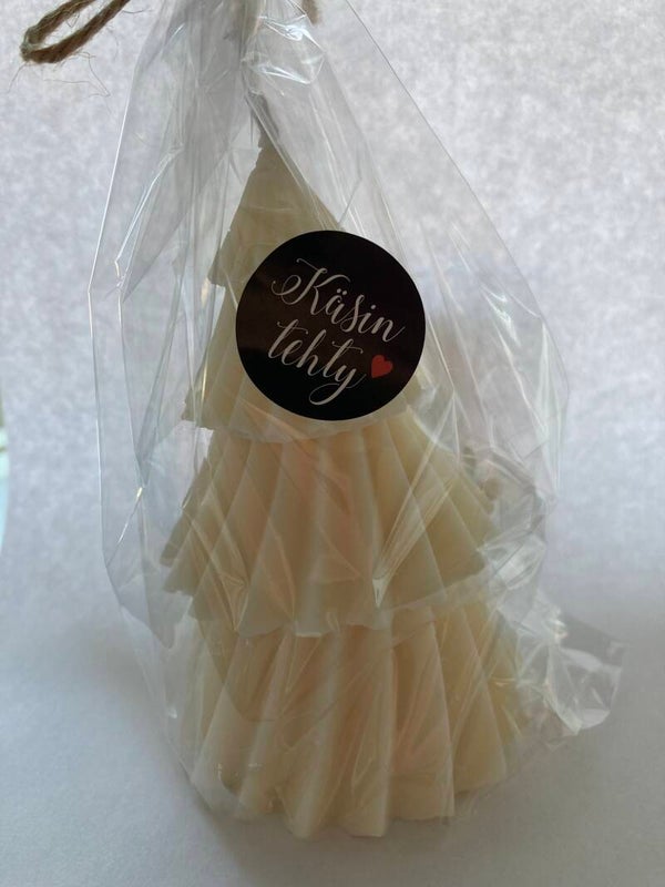 Satumaiset joulukuuset talviseen kattaukseen. Kuusissa on liukuvärjätty väritys,jolla kuuseen on saatu lumen peittämää tunnelmaa. Hauska moderni muoto tekee tästä kuusesta vähän erikoisemman.