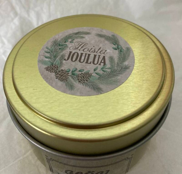 Kynttilä on metallipurkissa,joka on 7,5 x 7,5 x 5 cm kokoinen.