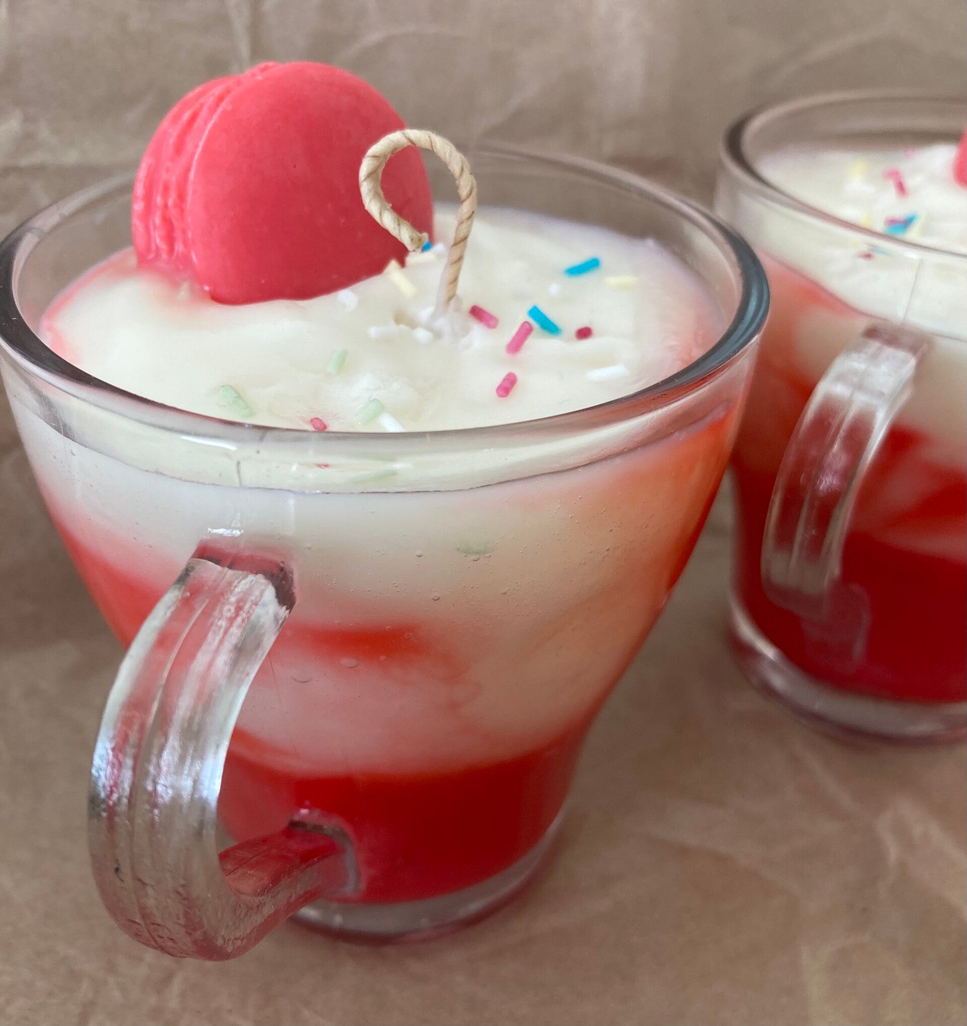 Makea ja mehukas kirsikantuoksu, jossa on kermainen vaniljapohja.