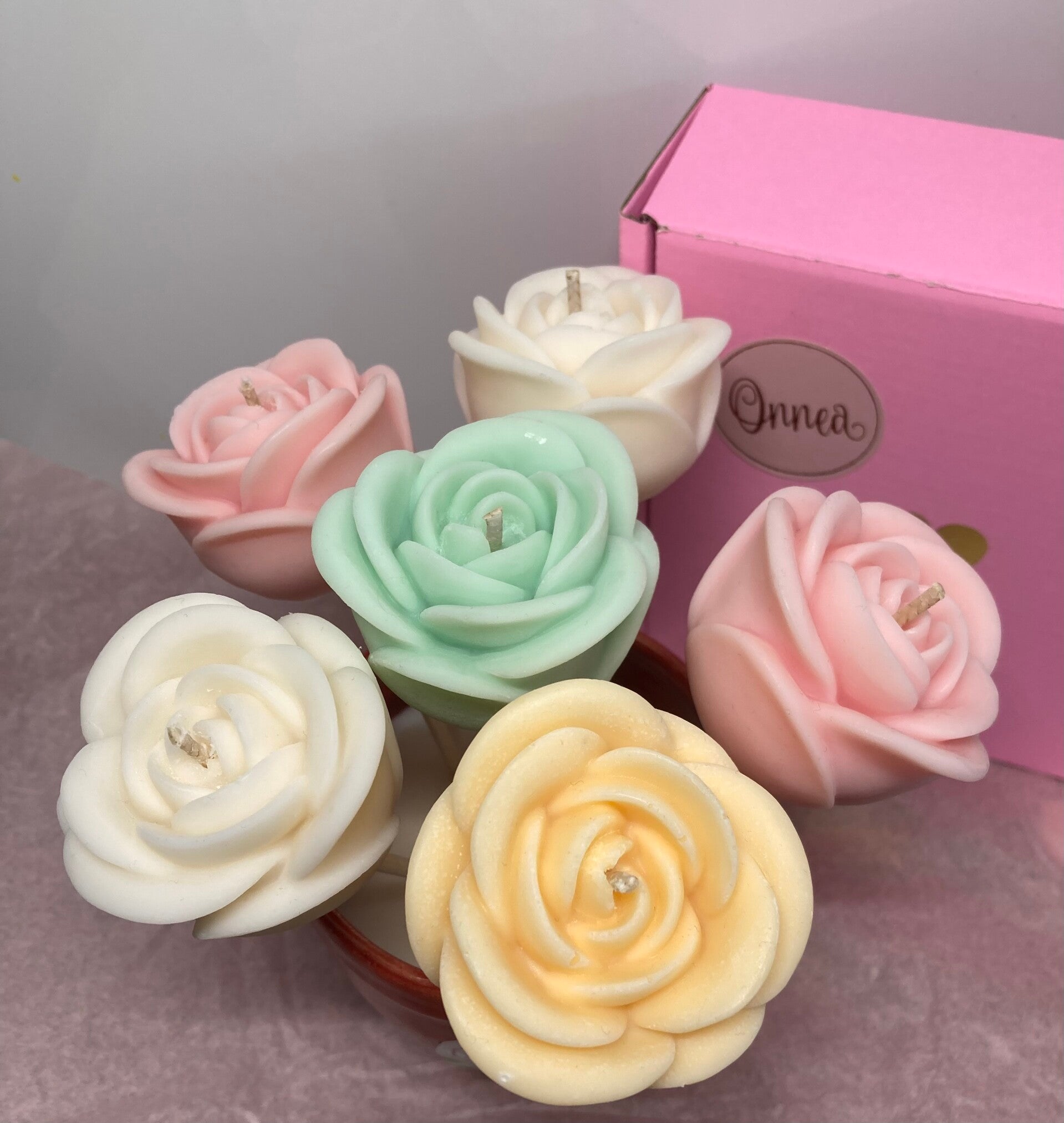 Kukat tulee irrottaa ennen kynttilän polttamista. Sisältää käyttöohjeet. Pakattu sellofaaniin.