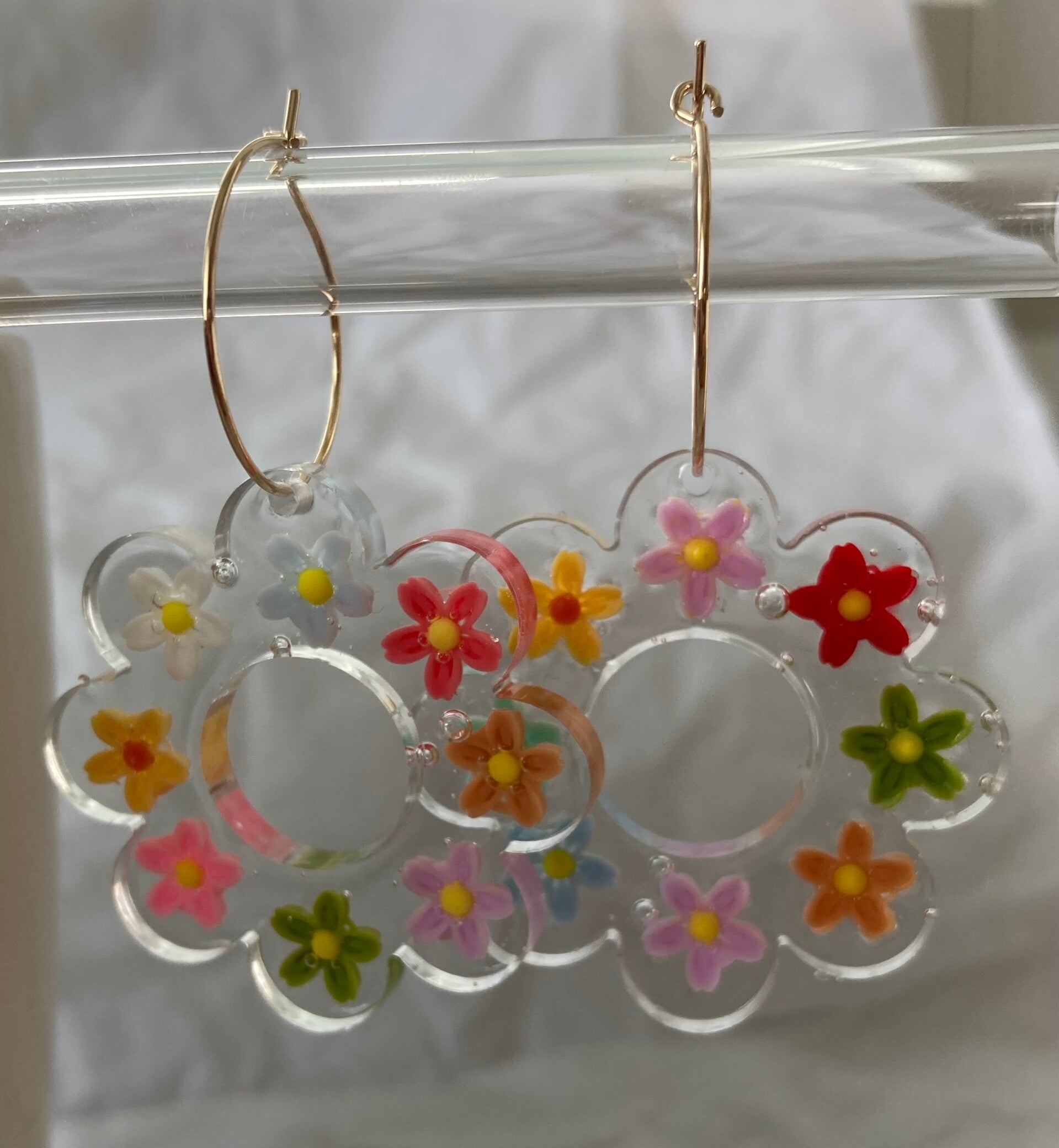 Kukkarengas on käsintehty Uv-hartsiin sekä kovetettu kestäväksi UV-valon avulla.