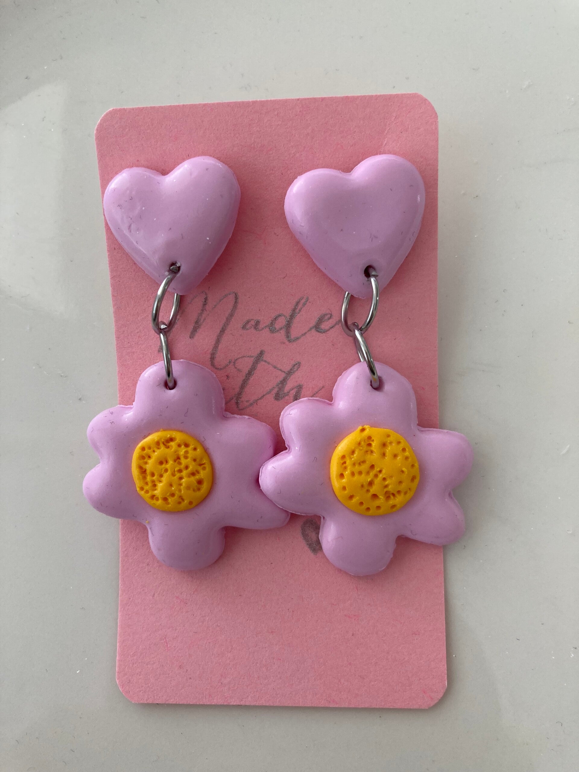 Kauniit käsintehdyt korvakorut on valmistettu polymeerisaveen.