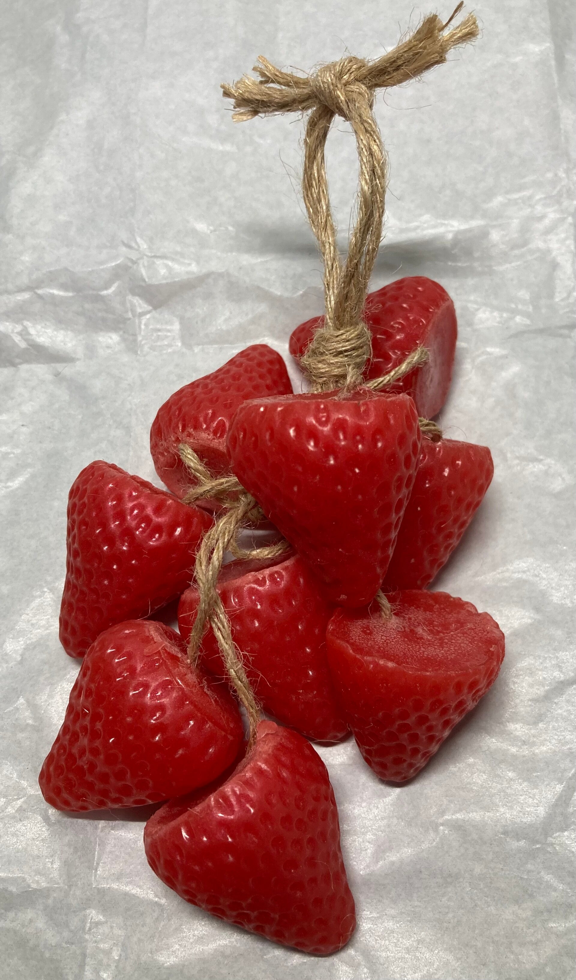 Mansikan pituus on n.4.5 cm ja kannan leveys n.3cm.