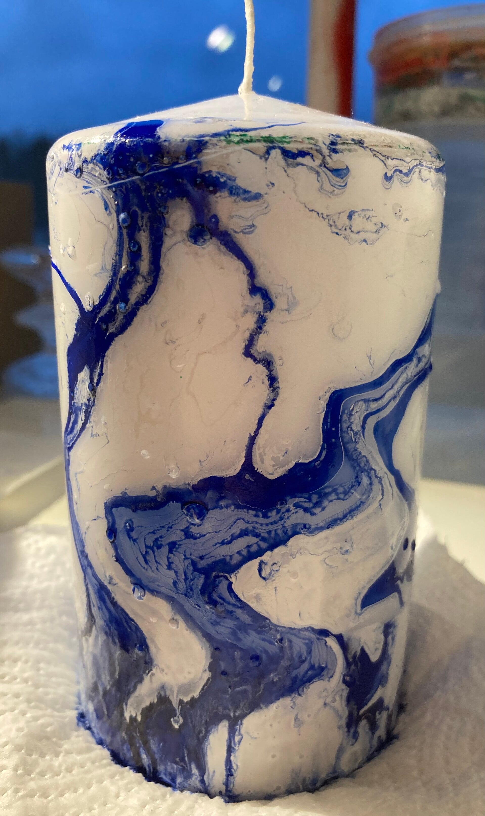Käsinvärjätty pöytäkynttilä💙🤍