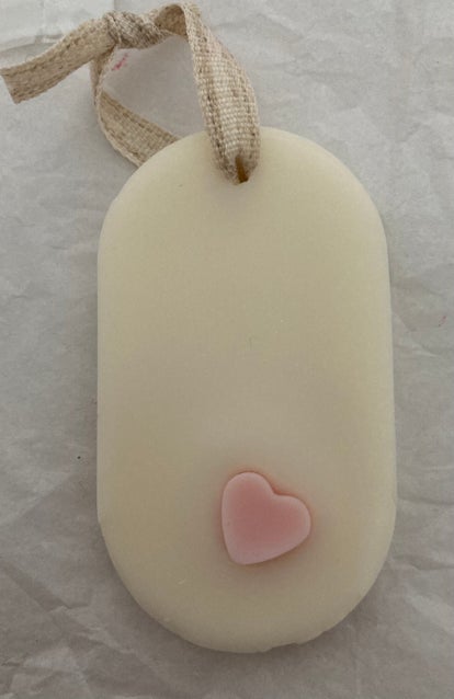 Pakkauksessa on yksi ripustettava pyöreä sekä pieni sydän.Pienen sydämen voit laittaa vaikka liinavaatekaappiin ja ison vaikka roikkumaan eteisen kaappiin.